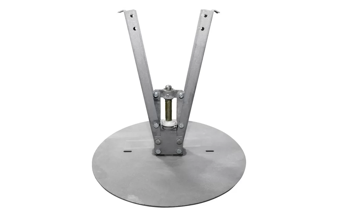 Устройство УЗНК представляет собой стальную плиту толщиной 5 мм круглой формы, оснащенную рычажно-винтовым механизмом. Рычажно-винтовой механизм с помощью болтов с самоконтрящимися гайками соединяется с закрепленным на плите швеллером. Рабочие узлы и крепежные детали устройства УЗНК изготовлены из нержавеющей стали и латуни. Для придания высокой коррозийной стойкости стальная крышка покрывается цинксодержащей порошковой смесью методом термодиффузионного цинкования (ТДЦ).