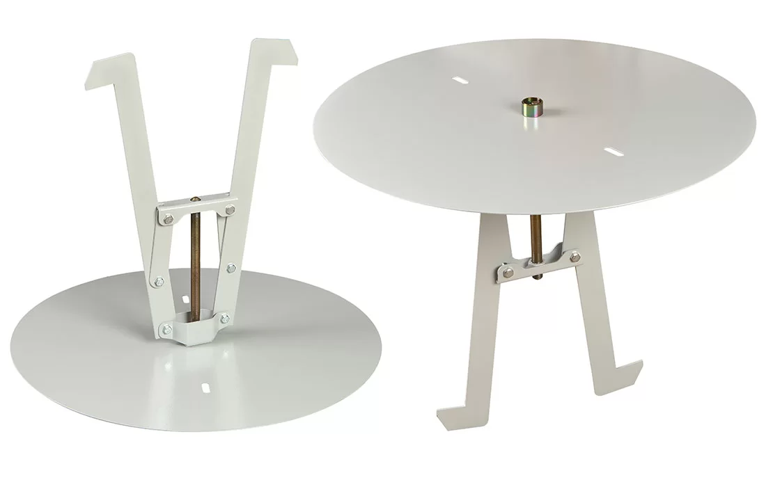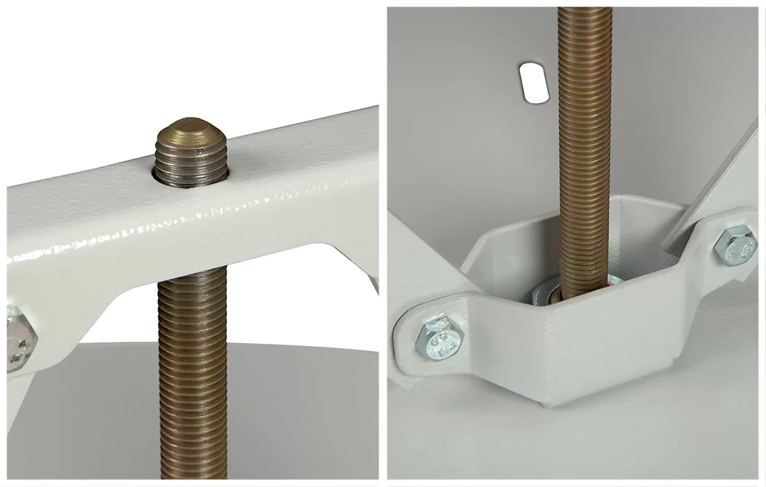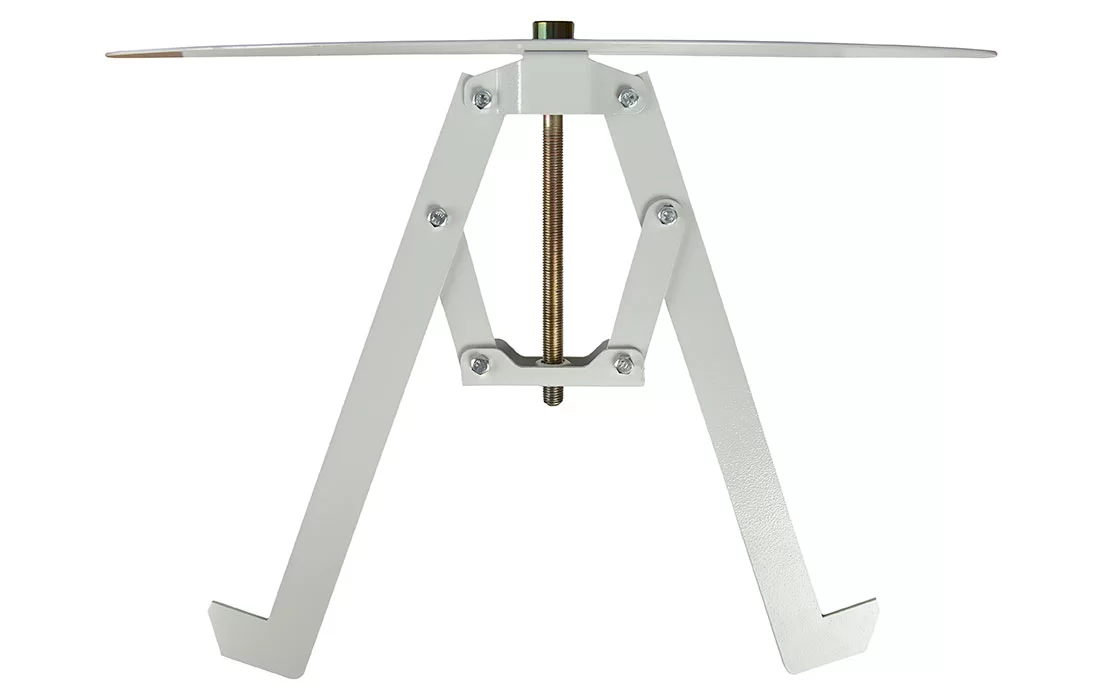 Устройство «УЗНКЛО-1» представляет собой стальную плиту толщиной 2 мм, круглой формы, оснащенную рычажно-винтовым механизмом. Рычажно-винтовой механизм соединен с плитой при помощи втулки, которая вставляется в плиту, с обратной стороны накручивается гайка на внешнюю резьбу втулки. Все рабочие узлы и крепежные детали устройства УЗНКЛО-1 изготовлены из стали. Для защиты от коррозии стальная крышка и рычаги покрыты порошковой краской, а винт покрыт слоем цинка.