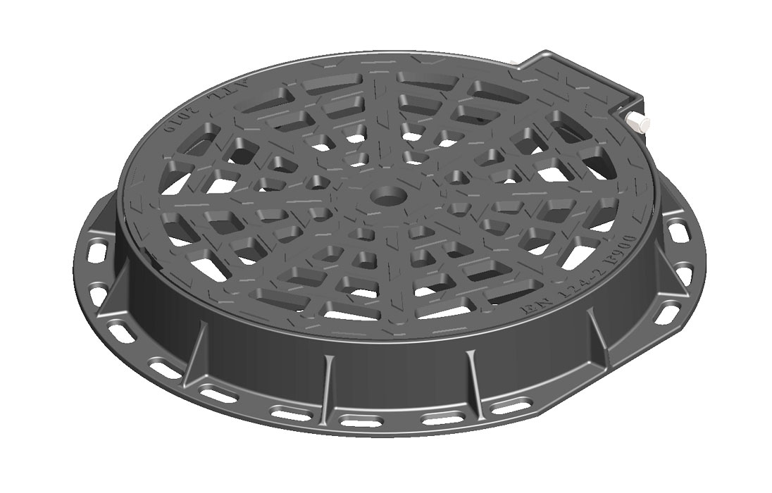 Дождеприемник усиленный из высокопрочного чугуна с шаровидным видом графита «ВЧШГ» состоит из корпуса и крышки с двумя ушкам. Крышка оснащена запорным механизмом для защиты от краж и постороннего проникновения в колодец. Запорный механизм приводится в движение с помощью торцевого ключа с накидной головкой (в комплекте поставки не входит). Корпус люка оснащен Т-образной вибрационной прокладкой для более плотного прилегания крышки.