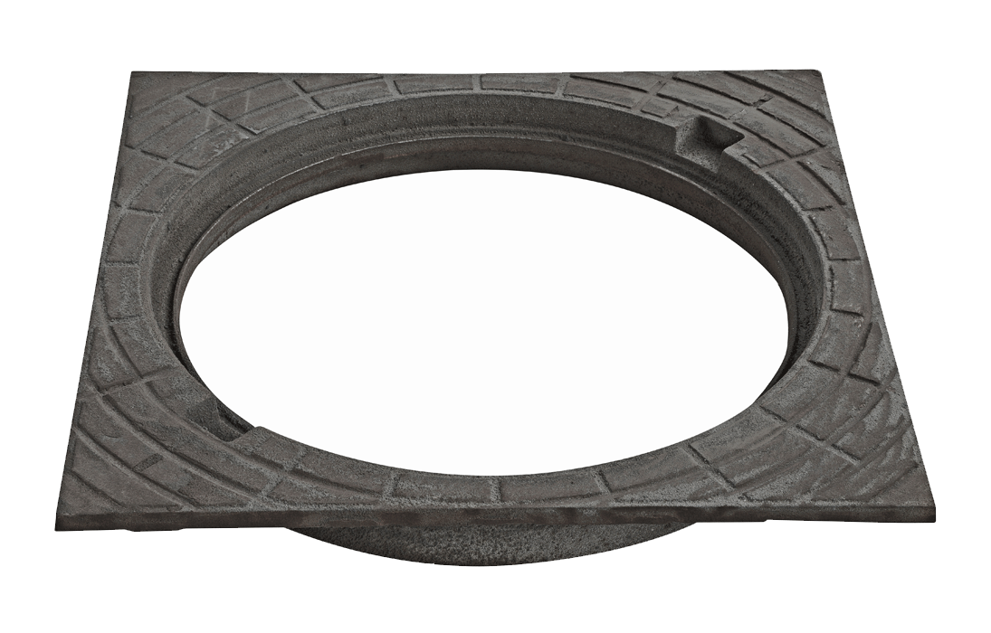 Чугунный корпус (обечайка) квадратного люка с номинальной нагрузкой в 15 тонн предназначена под комплектацию крышкой с двумя ушками.