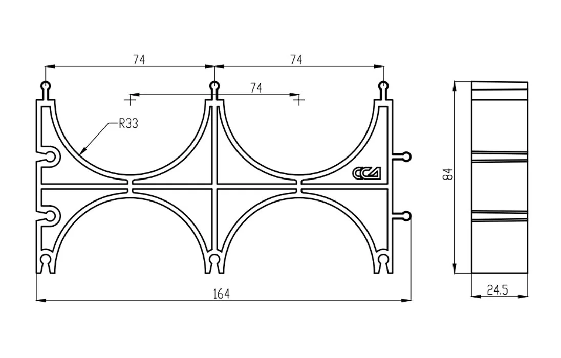Кластер представляет собой решетчатое изделие с ложементами для укладки труб, выполненное из пластика. На корпусе кластера имеются специальные выступы и пазы для соединения нескольких кластеров в единый блок при прокладке большего количества каналов.