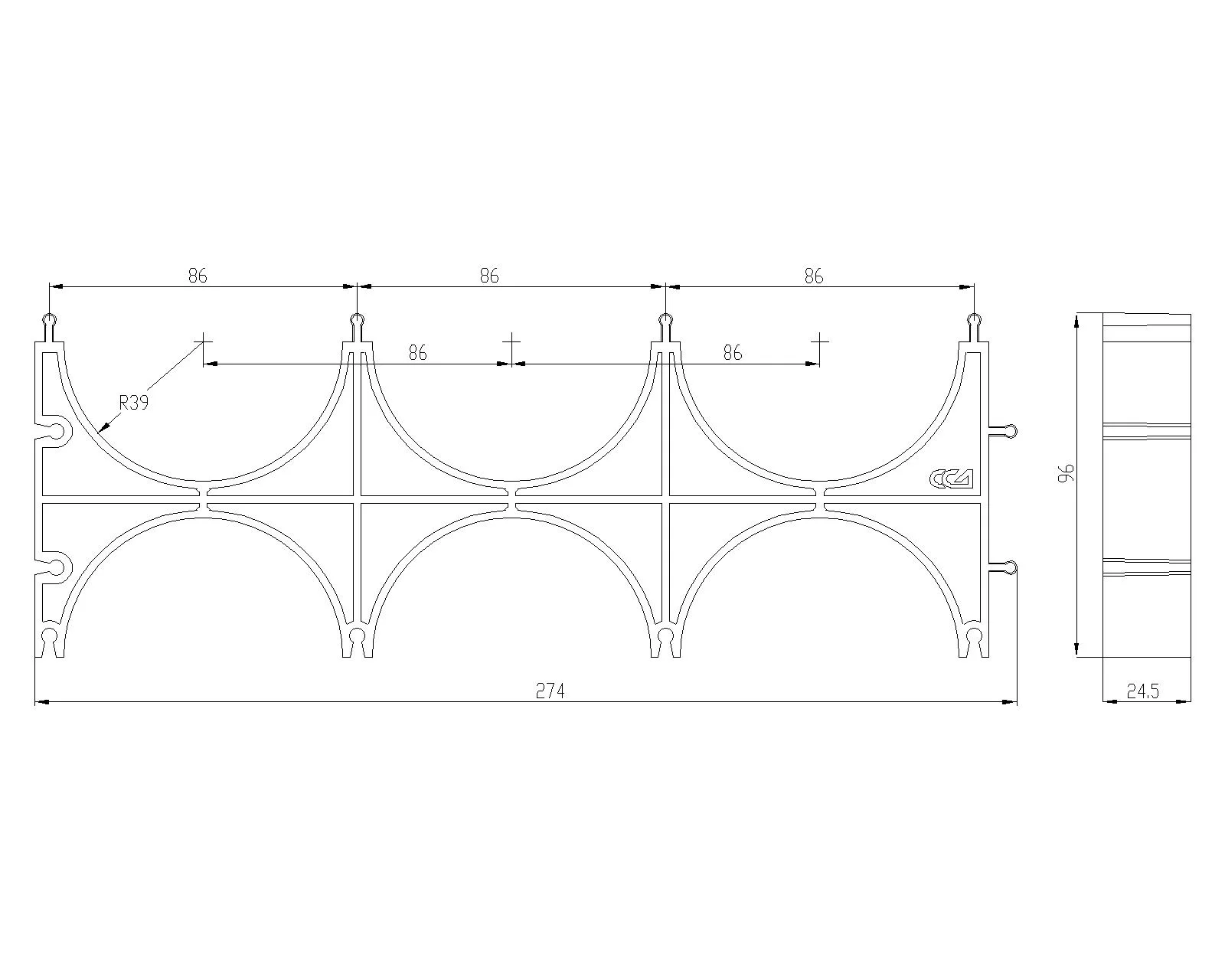 Кластер представляет собой решетчатое изделие с ложементами для укладки труб, выполненное из пластика. На корпусе кластера имеются специальные выступы и пазы для соединения нескольких кластеров в единый блок при прокладке большего количества каналов.