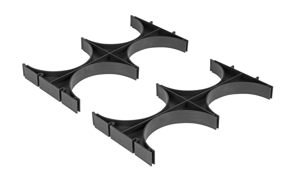 Кластер представляет собой решетчатое изделие с ложементами для укладки труб, выполненное из пластика. На корпусе кластера имеются специальные выступы и пазы для соединения нескольких кластеров в единый блок при прокладке большего количества каналов.