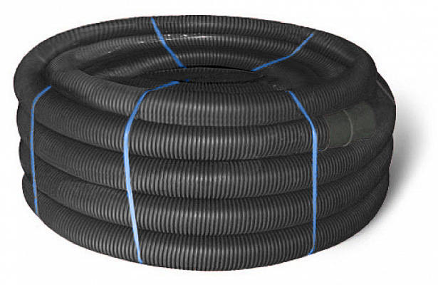 —151950 Двустенная труба ПНД гибкая для открытой прокладки д.50мм, SN13, УФ, с протяжкой, в бухте 100м, цвет черный