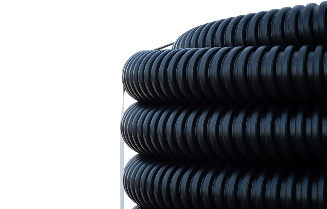 - один равномерный внутренний диаметр трубопровода на всем протяжении, от колодца до колодца, в отличие от других трубных решений, когда например, при сварке отрезков трубы происходит сужение внутреннего диаметра канала за счет образования грата (наплыва) полиэтилена.